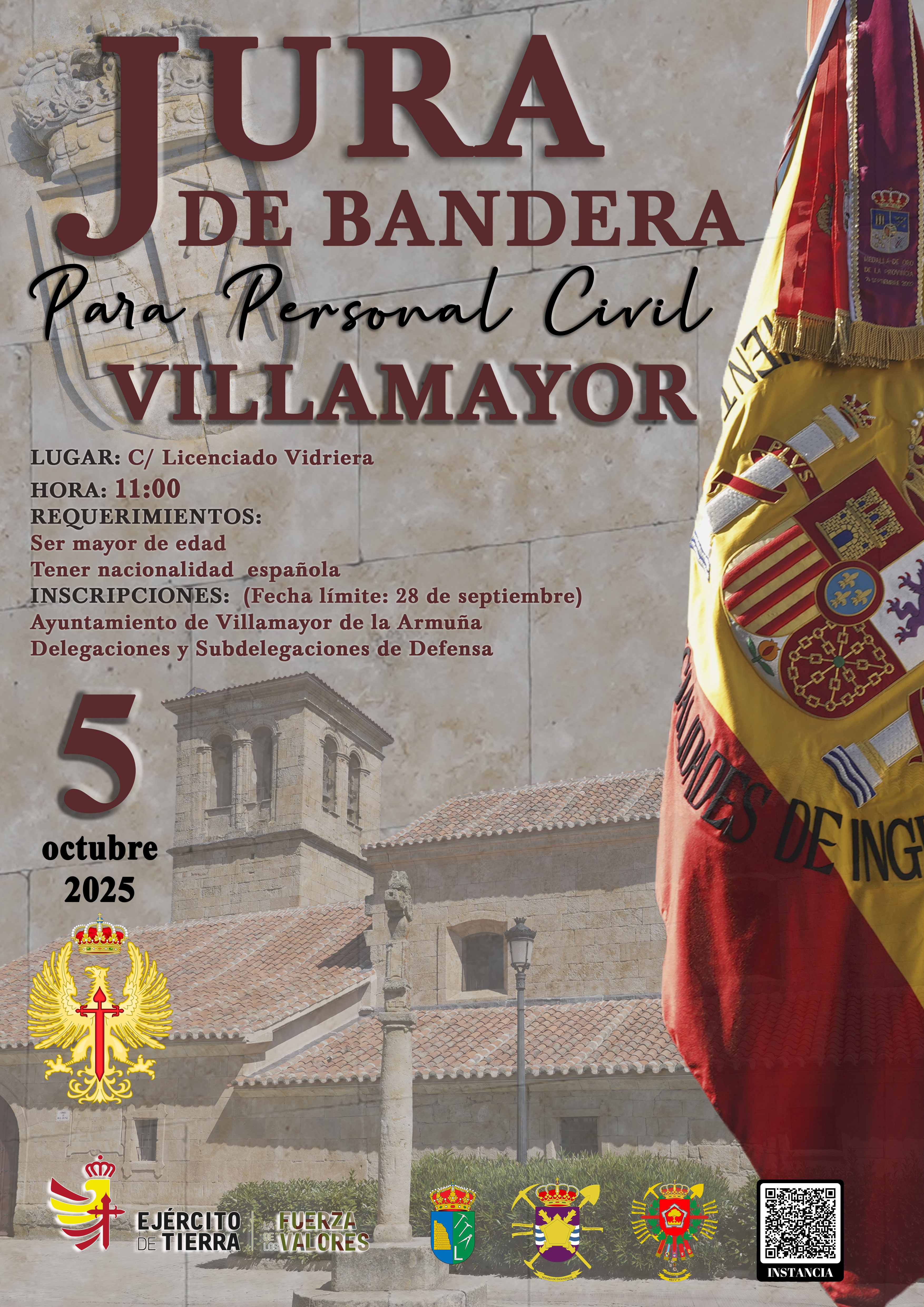 El próximo domingo 5 de octubre de 2025, a las 12:00 horas, Villamayor de la Armuña acogerá un solemne acto de Jura de Bandera para personal civil, organizado por el Regimiento de Especialidades de Ingenieros nº 11 de Salamanca.
