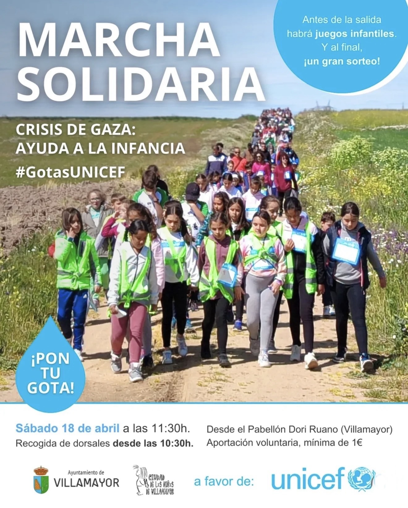 El Ayuntamiento de Villamayor, en colaboración con el programa Ciudad de los Niños, organiza una nueva edición de la Marcha del Agua, una iniciativa solidaria que tendrá lugar el próximo sábado 18 de abril a favor de UNICEF.